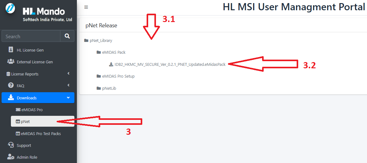 Click on arrow number 3 to expand the folders. Inside the folder, you will find the downloads link, which is indicated by arrow number 3.2.